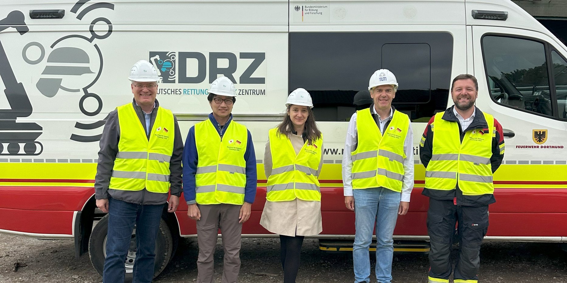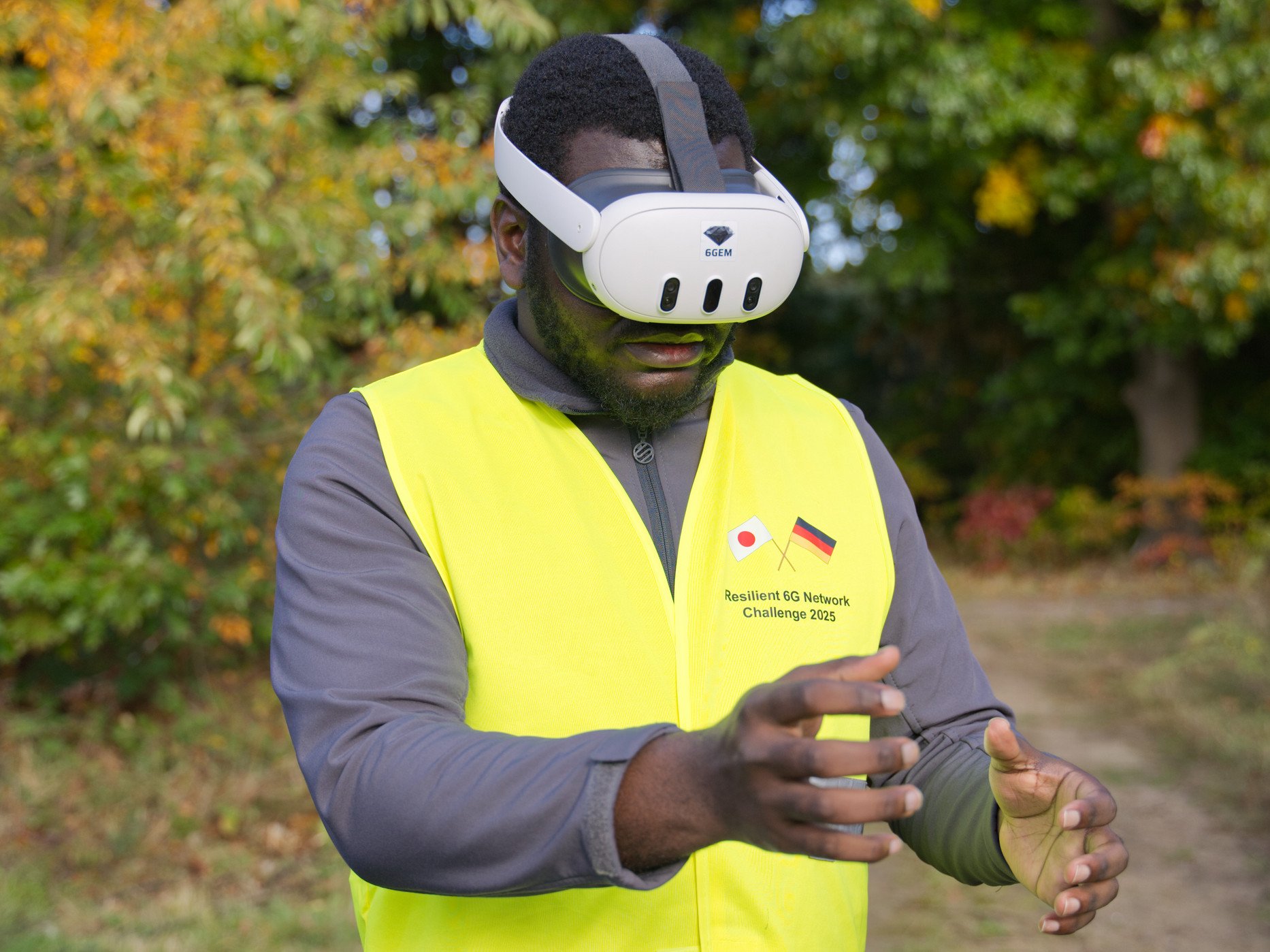 From October 7 to 9, 2025, research teams from the BMFTR-funded 6G research hubs 6GEM and 6G-Life gathered at the Training Base Weeze—Europe’s largest training site for first responders—for the first Resilient 6G Networking Challenge. The event was hosted by the German Rescue Robotics Center (DRZ) as part of the BMFTR-funded German-Japanese 6G cooperation activities. The challenge aimed to validate research results related to the resilient control of rescue robots in realistic emergency response scenarios, such as search-and-rescue (SAR) missions and chemical incidents. Participants from 6GEM (TU Dortmund), 6G-Life (TU Munich and TU Dresden), and Japan’s National Institute of Information and Communications Technology (NICT) demonstrated resilient 6G network solutions for mobile rescue robots and evaluated how multi-connectivity approaches perform under real-world conditions. The teams showcased various networking technologies—including cellular, mesh, and non-terrestrial links—and their seamless integration to maintain uninterrupted connectivity even in harsh environments. First responders from DRZ joined the experiments to experience immersive teleoperation of rescue robots over 6G links. To highlight interoperability, a diverse fleet of ground and aerial robots was deployed in the demonstrations. TU Dortmund contributed for 6GEM its multi-link technology SEAMLESS and adaptive video streaming framework RISE, combining cellular, mesh, and satellite communications into a unified, resilient 6G networking solution enabling immersive robot control. TU Dortmund also operated its 6G-evolved Open RAN testbed O-RACES to support multi-link teleoperation and presented an automated mesh-node deployment mechanism for restoring coverage in obstructed environments, such as within buildings.